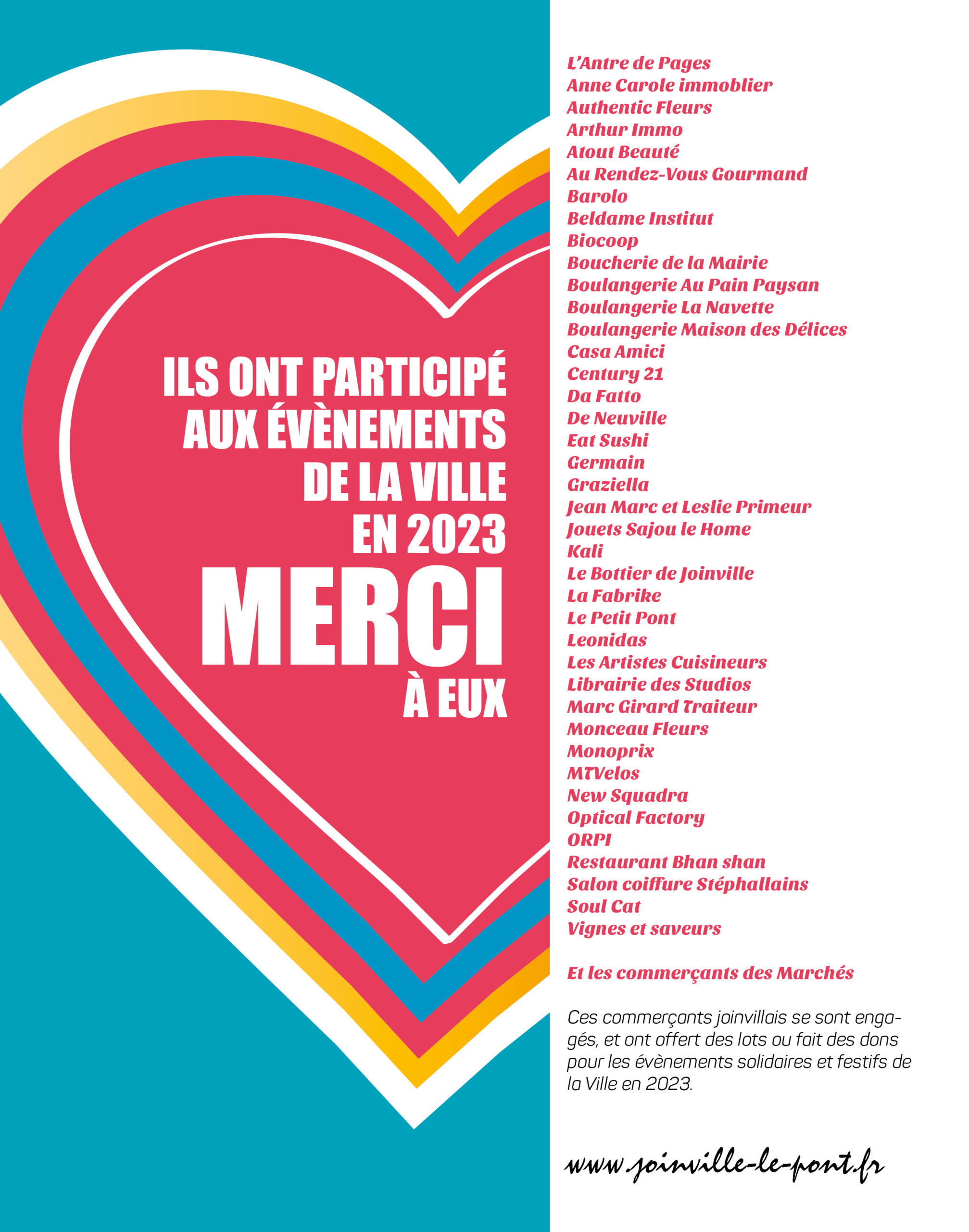 Un grand merci à tous les commerçants joinvillais qui ont encore une fois permis de faire vivre la Ville en 2023 !