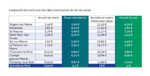 Comparatif des tarifs avec les villes avoisinantes du Val-de-marne